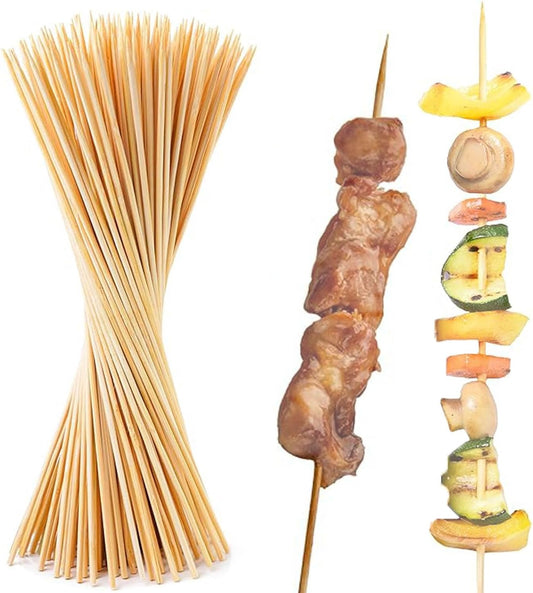 30Cm Bamboo Skewers, 100 PCS Large Skewers Wooden, BBQ Skewers, Skewer Sticks Wooden, Kebab Skewers, Candy Floss Sticks, Wooden Skewers for Chocolate Fountain, Vegetable, Fruit, Meat, Pack of 100
