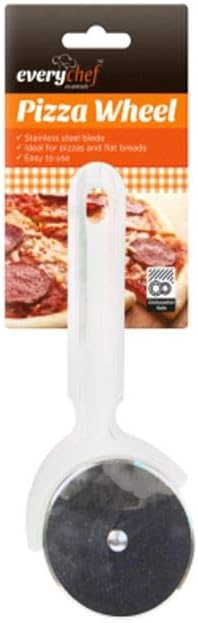 Stainless Steel Pizza Wheel Cutter Plane Sharp Blade Kitchenware Utensil Heavy Duty Silicone Handle Hanging Hoop Protective Cover [ White ]