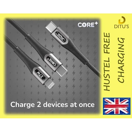 USB-C to Dual Output USB-C Cable and Apple Compatible, 100W Nylon Braided Power Delivery PD with Indicator Light Fast Charger, Nylon Braided Cord Compatible with Galaxy S, Iphone