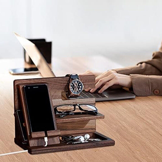 Bedside Organiser Birthday Gifts For Him Wood Phone Docking Station Key Holder